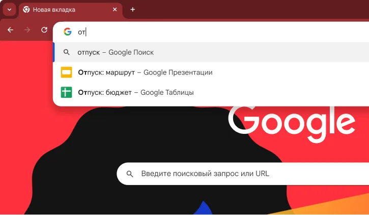 Экономьте время и получайте ответы прямо в адресной строке. Узнавайте погоду, а также перевод и определения слов, не выходя из текущей вкладки.